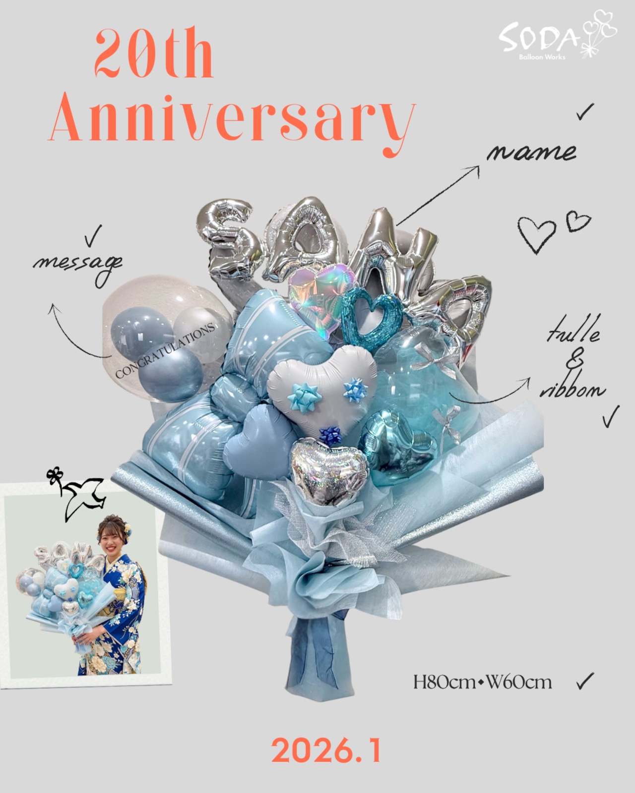 ハタチのブーケ【BLUE mix】成人式バルーンブーケ